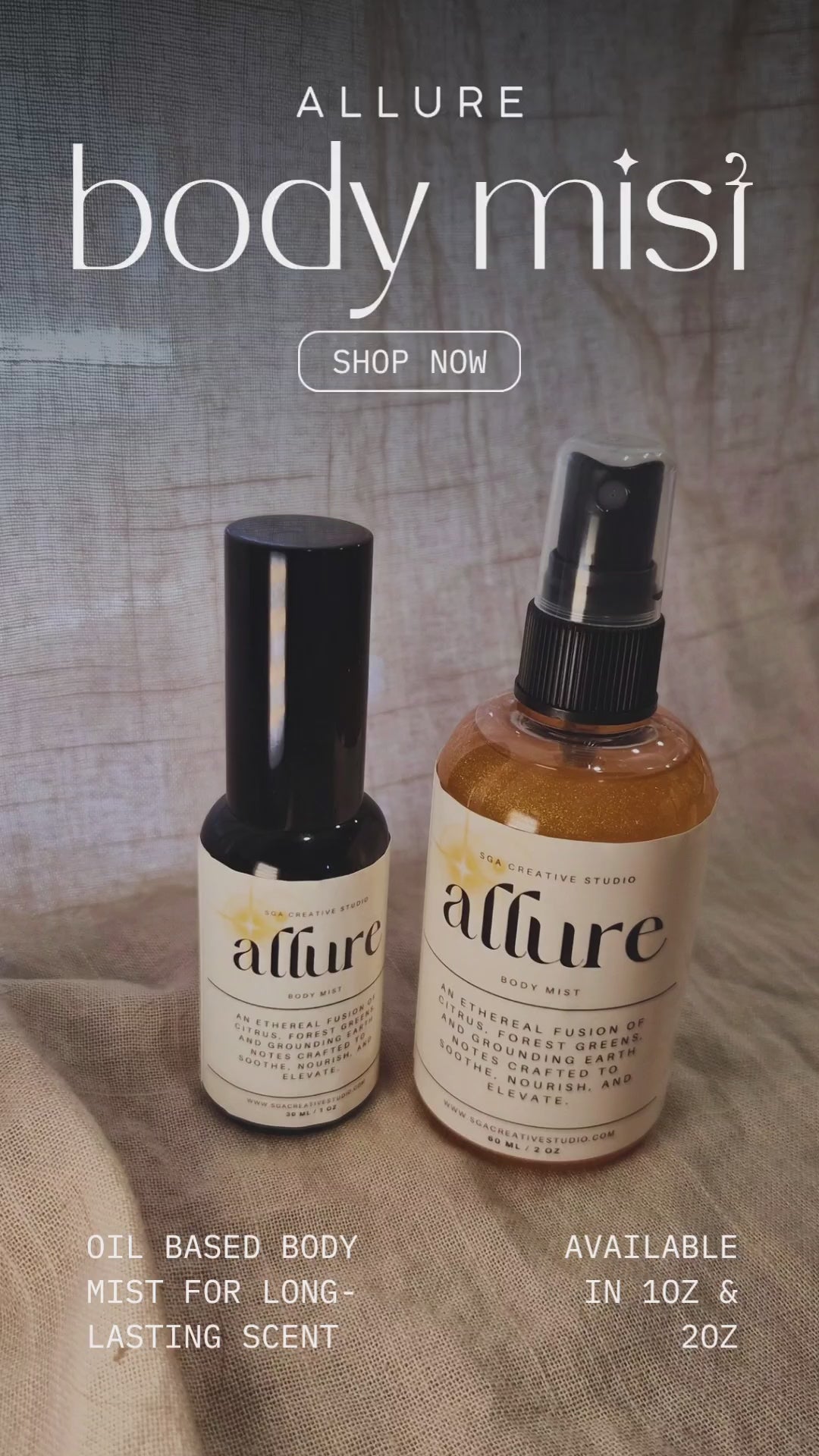 Meet Allure Body Mist, the oil-based body mist that mirrors the dreamy aroma and luminous finish of our Allure Body Oil. Designed to drape skin in a weightless, moisturizing glow. This mist combines the elegance of a dry oil with the sensual diffusion of a perfume.